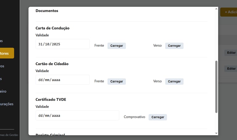 Dificuldade em controlar as datas de validade de documentos (licenças, seguros, inspeções) dos motoristas e dos veículos, colocando a frota em risco legal.